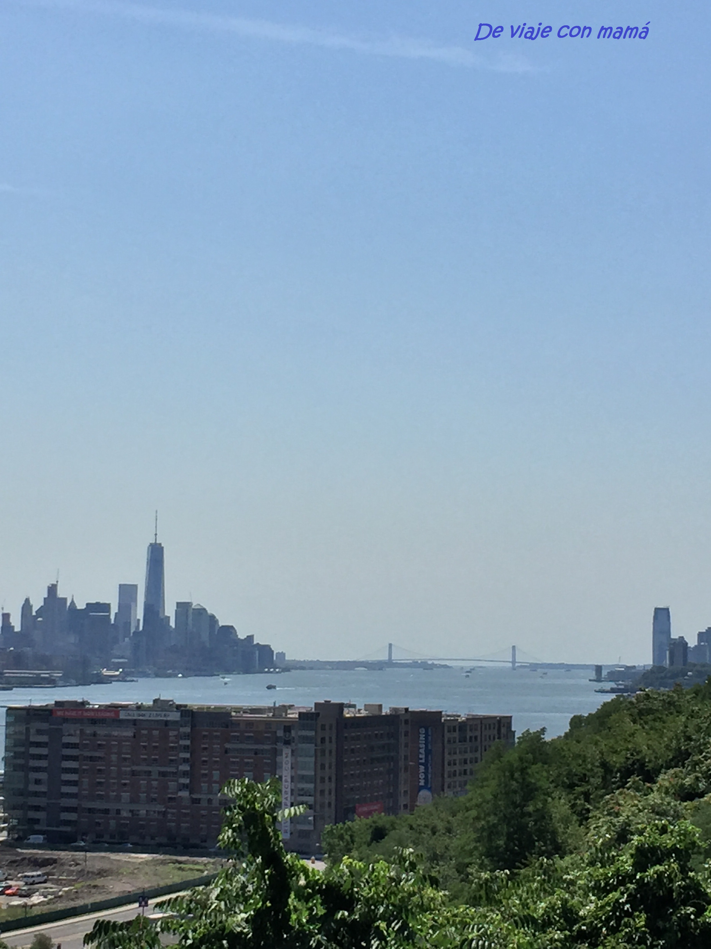 Vuelo con la TAP, vía Lisboa. No mucho tiempo de espera, así que bien. A la entrada en USA, aeropuerto de Newark, una cola tremenda porque llegamos con otros vuelos a la vez, así que a esperar el turno. Justo a los dos de delante se los llevan a la “salita”, pero nosotros pasamos sin desvío esta vez. Recogemos maletas. Todo perfecto. Nos está esperando la familia. Calor y humedad al salir. Ya de camino a casa primeras vistas de Manhattan.