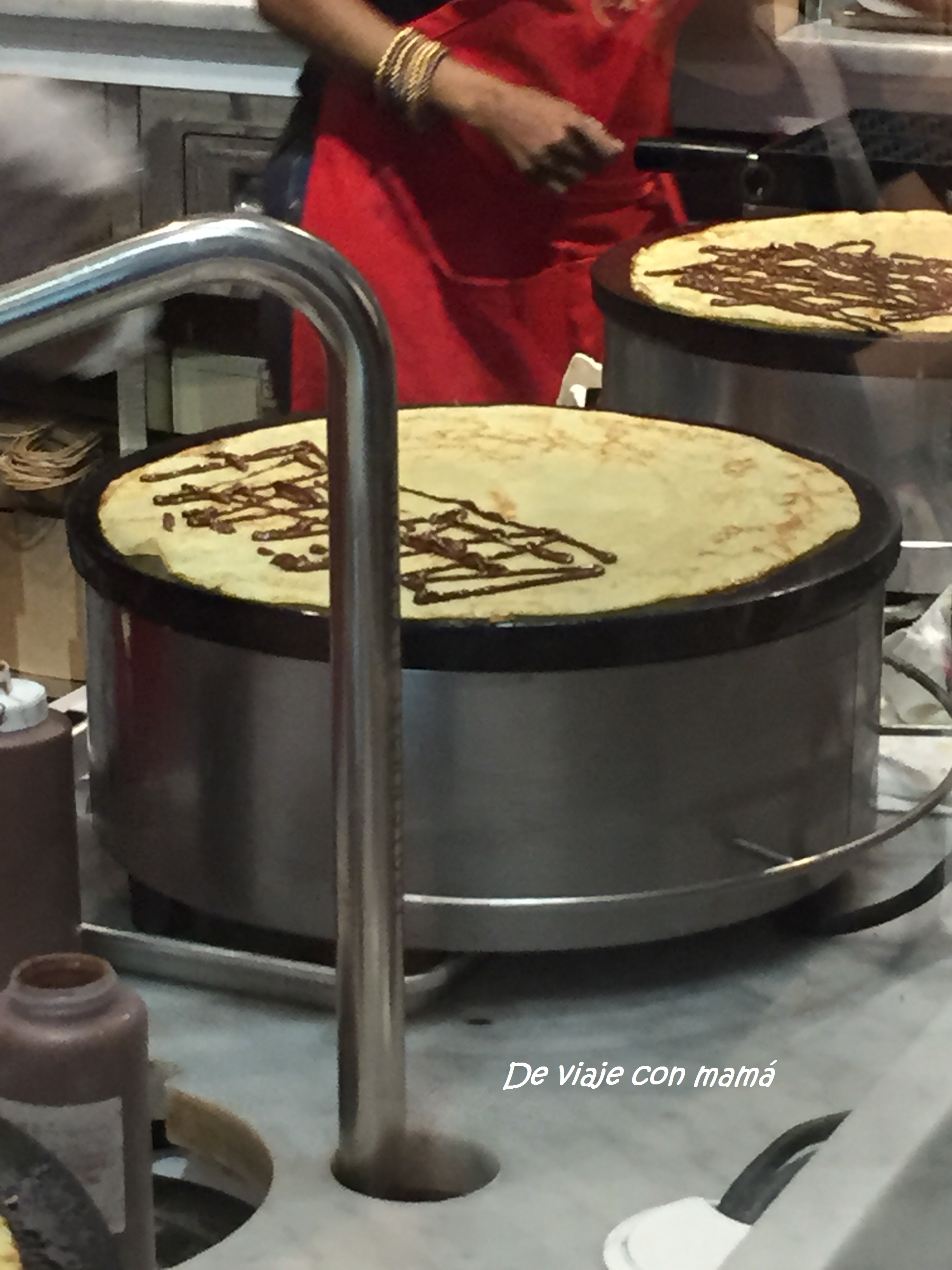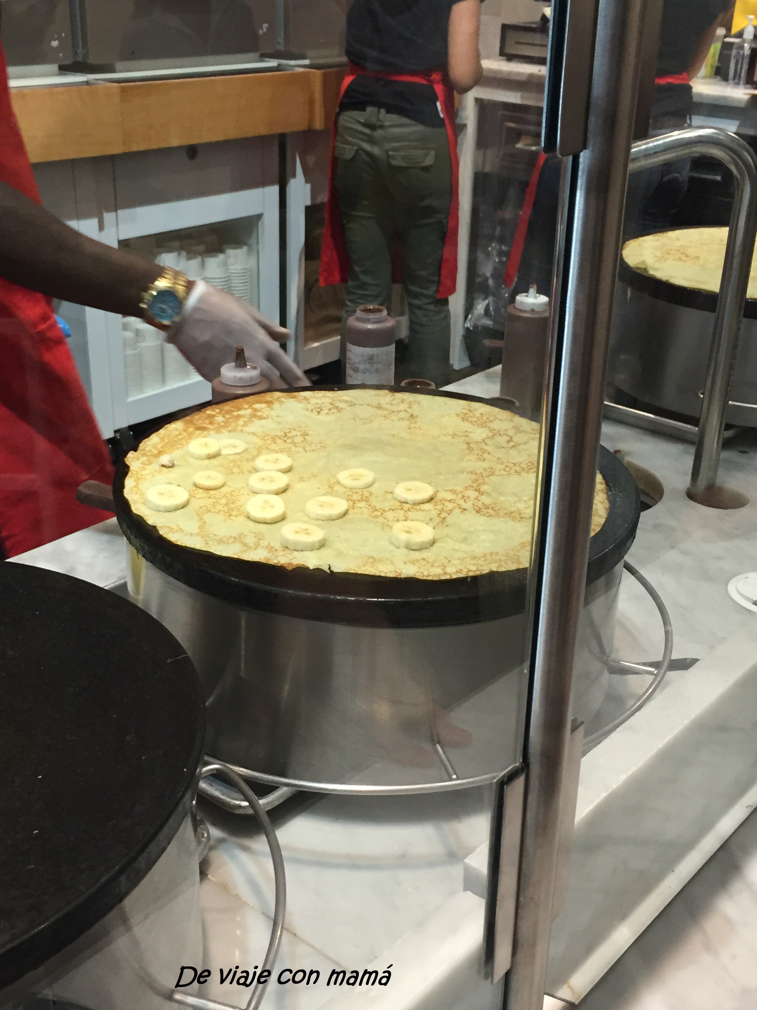 Después damos una vuelta por Eataly, que está enfrente, donde mi «pequeñín» se come un crepe de Nutella con plátano. Buen sitio para hacer uso de sus baños. Nunca hemos comido aquí porque siempre que hemos entrado está hasta arriba. Hay varios puestos con diferentes tipos de comida y mesas en el centro para sentarse. Tienen también una tienda donde comprar productos italianos, sobre todo quesos.