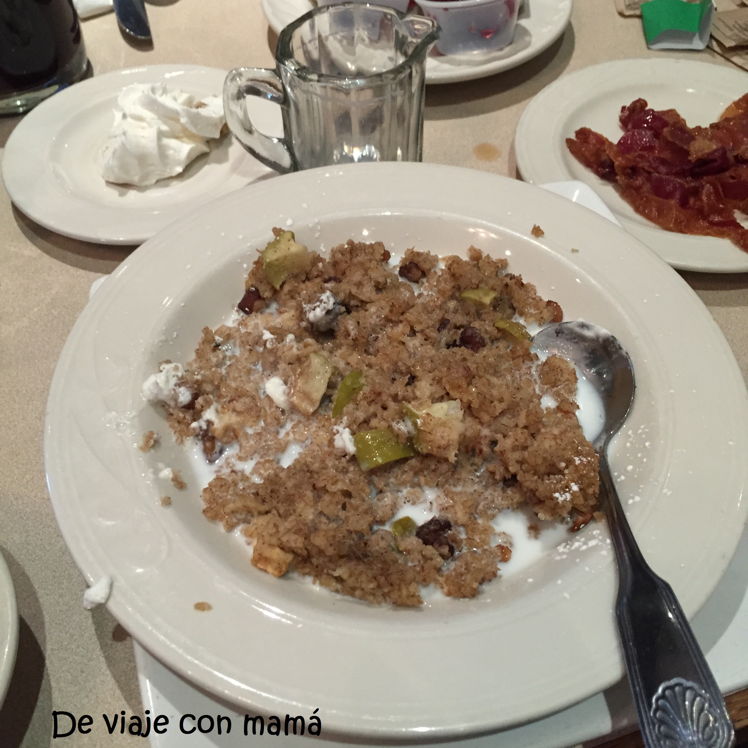 - Fruta y avena con pasas y canela con leche
