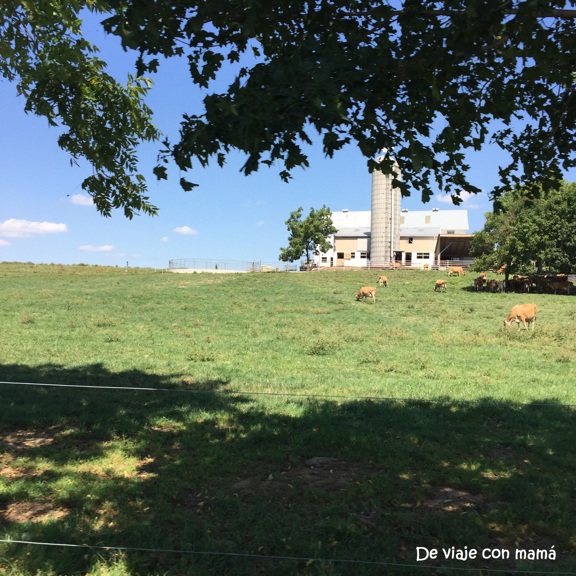 Después de desayunar cogemos el coche y nos recorremos casi toda la zona al este de Lancaster por carreteras secundarias, viendo las granjas, los cultivos de tabaco y maíz sobre todo, cómo secan en tabaco en naves enormes con enormes ventiladores. Hemos visto bastantes hombres trabajando en el campo con caballos, pero también se ven tractores. Mucha vacas, caballos y ponys y un olor….a naturaleza viva!! La verdad es que es todo precioso, todas las casas muy bien cuidadas, con muchas flores y el césped perfectamente cortado por todas partes. Como dice mi tío, le recuerda a su tierra gallega, todo tan verde…