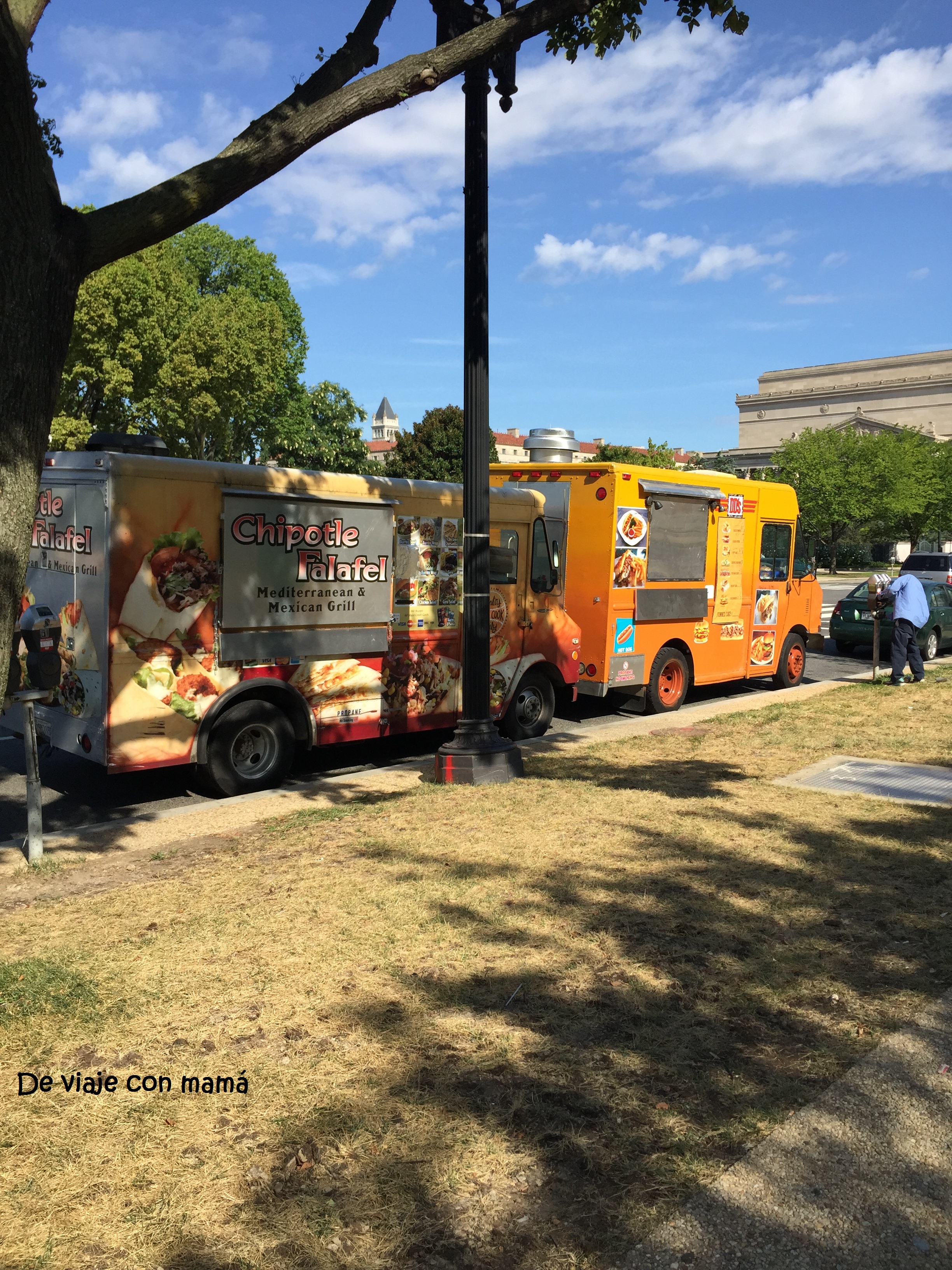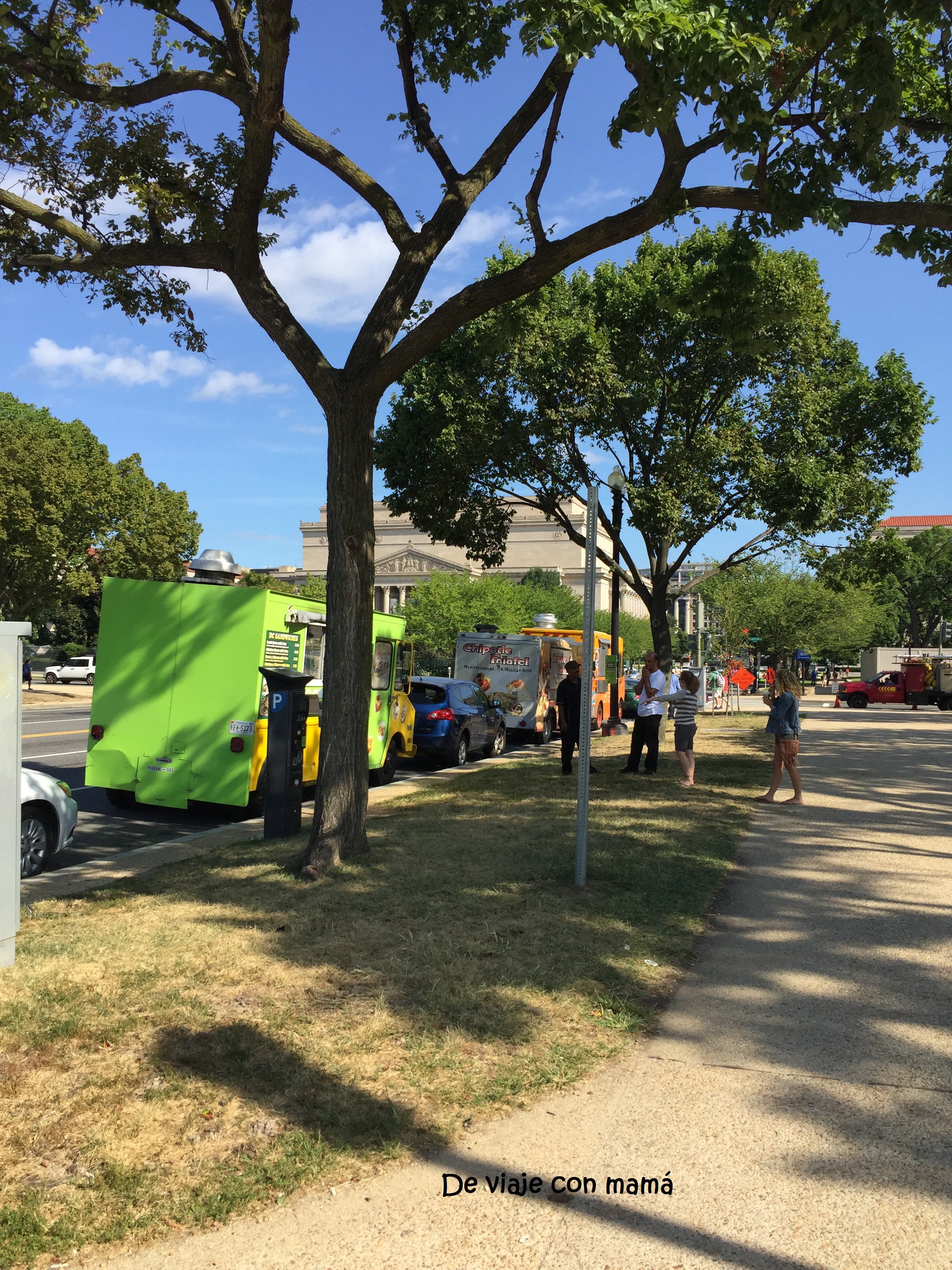 Hace calor, así que nos sentamos a la sombra en las escaleras de Monumento a Lincoln. Después de millones de fotos, con bicho, sin bicho, selfies… nos vamos camino del hotel a comer a los Food Trucks. De paso cogemos el hop-on/hop off bus de Big Bus para aprovechar la tarde dando vuelta por Washington, que a pie no nos dará tiempo. Nos cuesta para los dos 55$, tiene audioguía y auriculares incluidos. Según lo cogemos nos lleva a Arlington pasando por el Pentágono, pero no nos bajamos. Mañana toca Cementerio de Arlington, que está detrás del Monumento a Lincoln al otro lado del río, que creo que ya no es Washington DC sino Virginia.