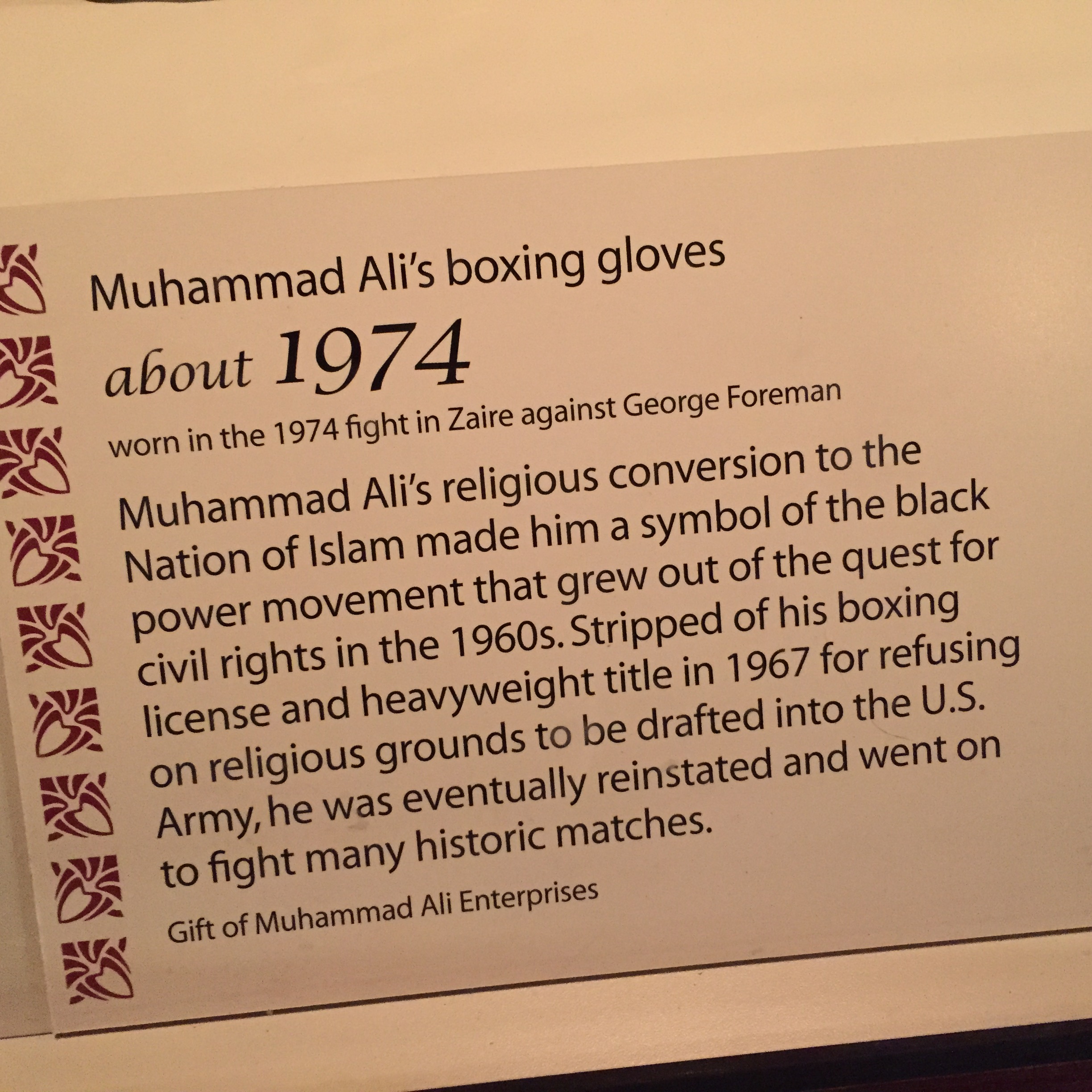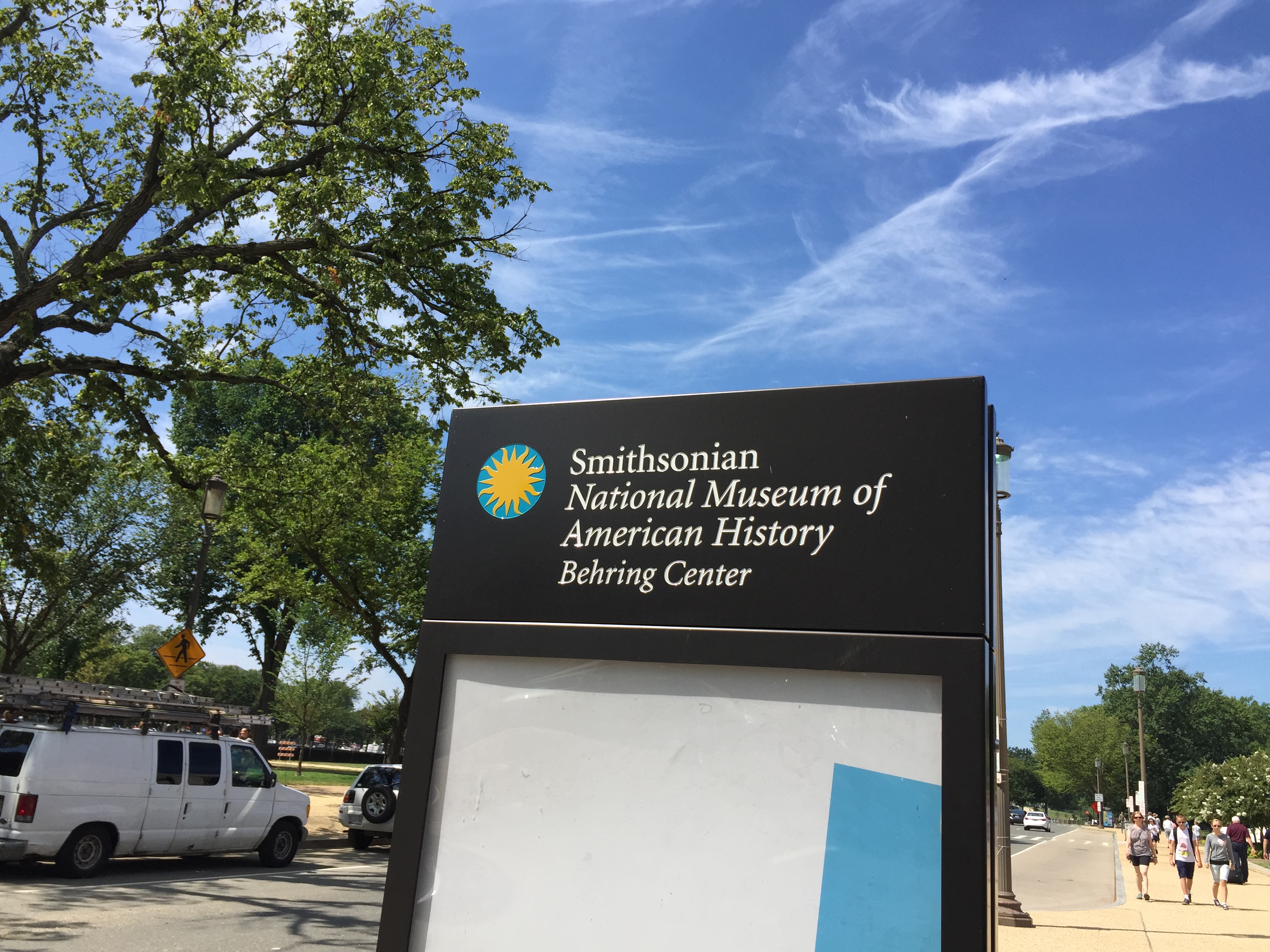 Seguimos y nos vamos al museo Smithsonian de Historia Americana, muy interesante la verdad. Sobre todo la parte dedicada a las guerras en las que EEUU ha tomado parte. Además tenían opción de guía y sólo estamos nosotros dos, así que un señor mayor encantador nos hizo el recorrido contando anécdotas en cada parada del recorrido. Muy agradable. Encima conocía Madrid y tenía unos recuerdos preciosos de su estancia. Tiene exhibiciones sobre la cultura popular americana como los zapatitos de rubí del Mago de Oz, una colección de los trajes inaugurales de las Primeras Damas, la bandera americana que inspiró el himno nacional y los guantes de boxeo con los que Muhammad Ali peleó con George Foreman en 1974, un traje de James Brown………………..