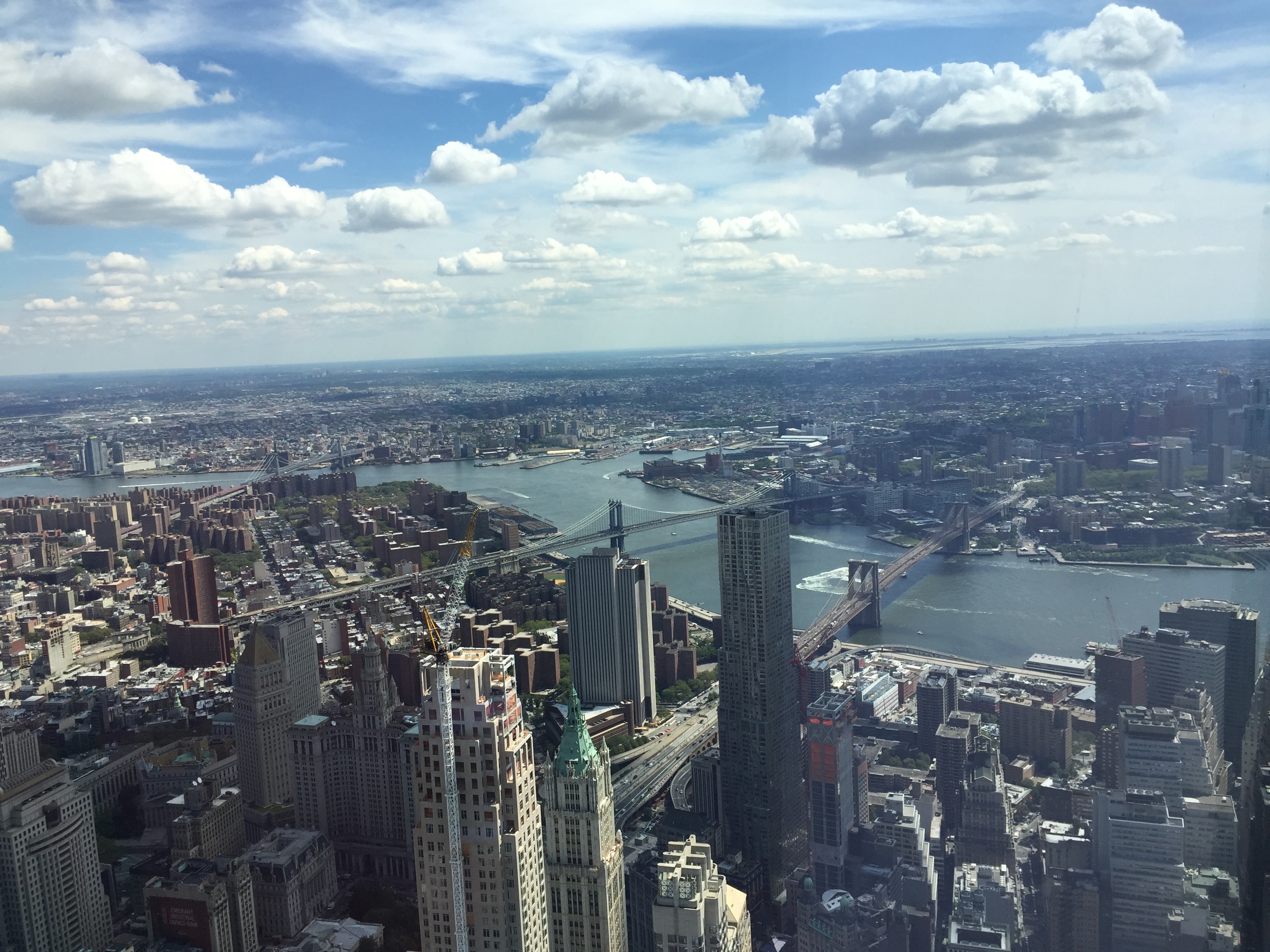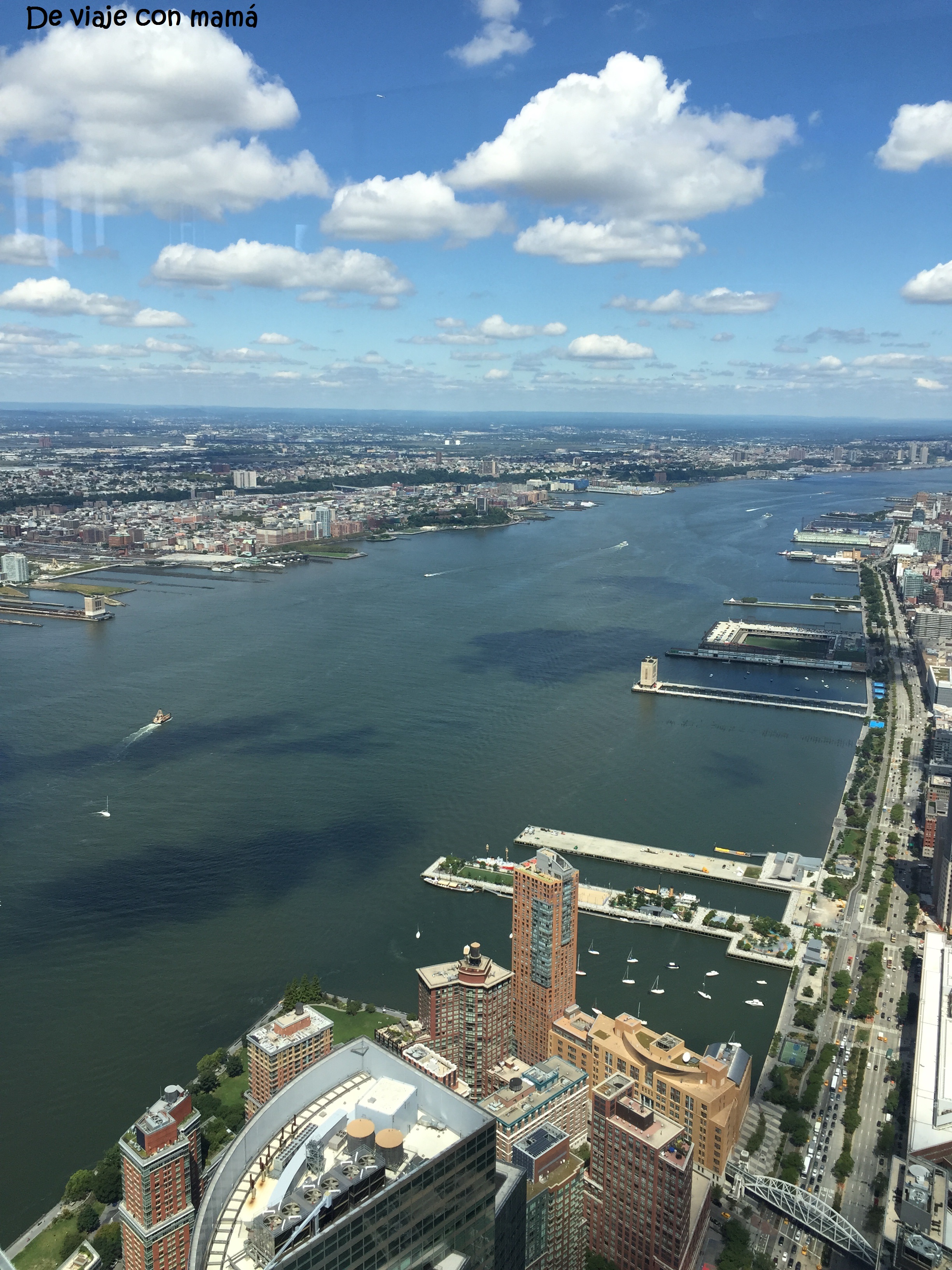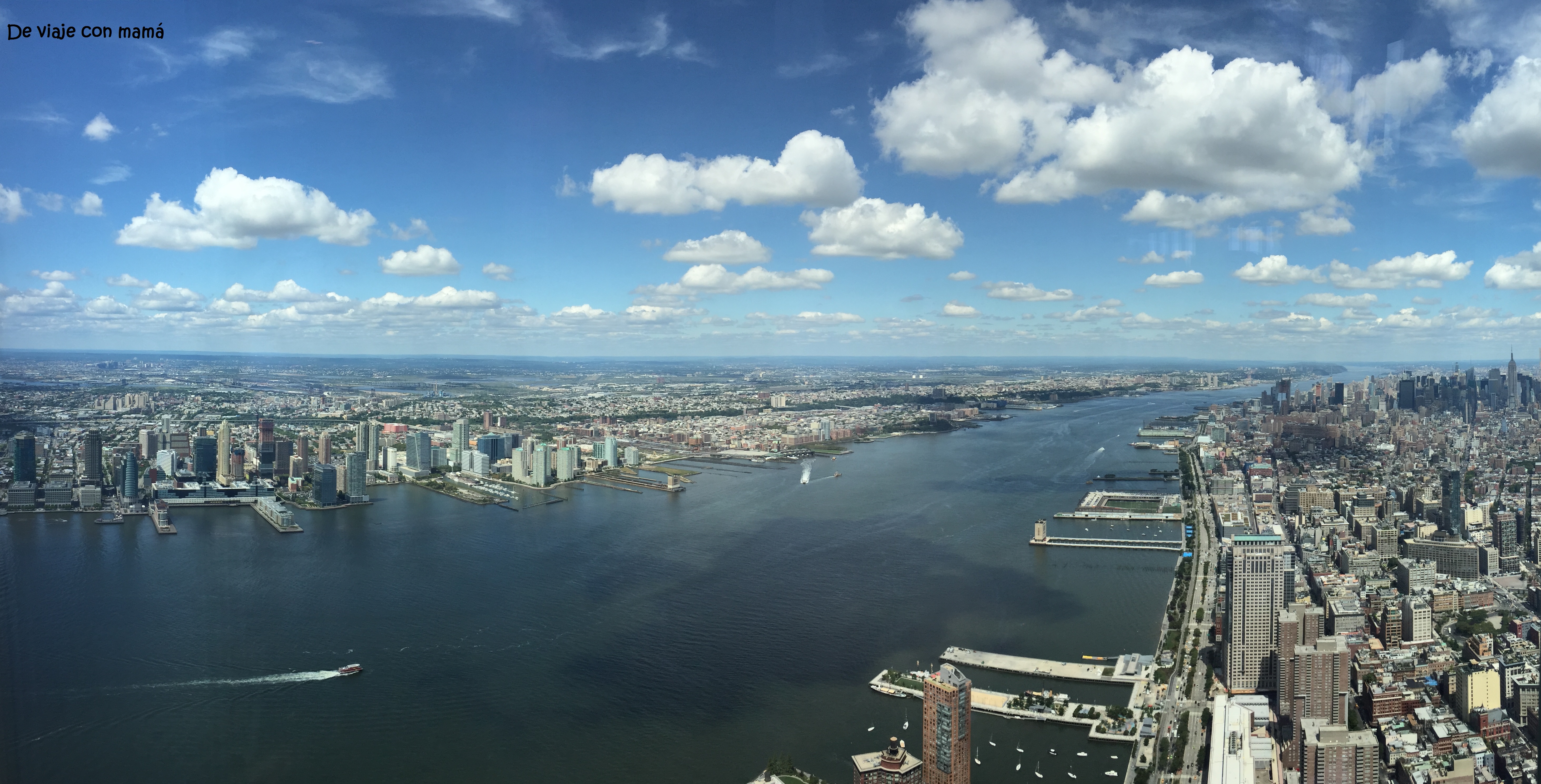 Hoy no toca caminata mañanera. Cogemos el bus hasta Manhattan, luego el metro directo al WTC para subir a la nueva torre. Llegamos con tiempo, así que esperamos como 15 minutos y ya nos dejan subir. Nosotros sacamos las entradas online, pero también se pueden sacar allí y no hay una cola especialmente larga, imagino que lo malo será que te darán una hora para subir, porque la cola de la gente con entrada online es larga, aunque avanza rápidamente.