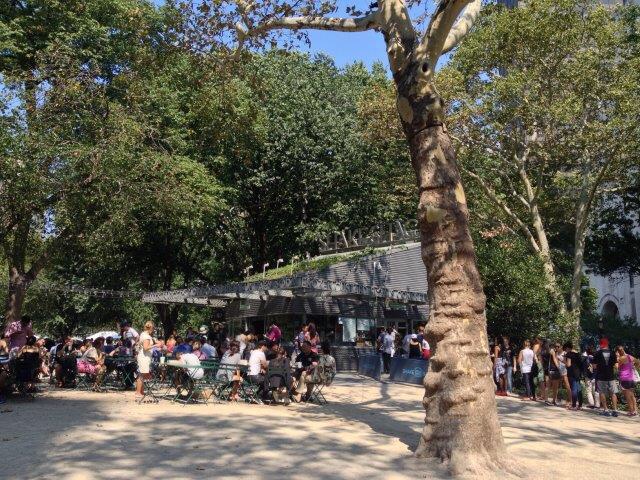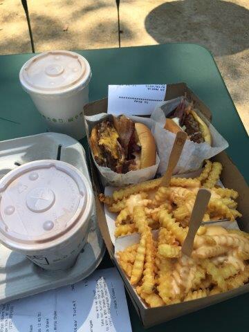 Para nuestro gusto es uno de los mejores sitios para comerte una hamburguesa en Manhattan. Es una cadena que tiene varios locales en Manhattan. El que más nos gusta, sobre todo porque casi siempre vamos en verano y se puede comer en el parque, es el que está en el Madison Square Park, justo en frente del Flatiron Building. Creo que fue el primero.